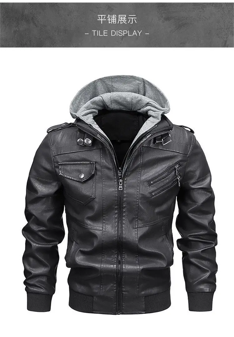 Car Leather Jacket Men's Short Knitted Hooded Casual Business Retro PU Leather