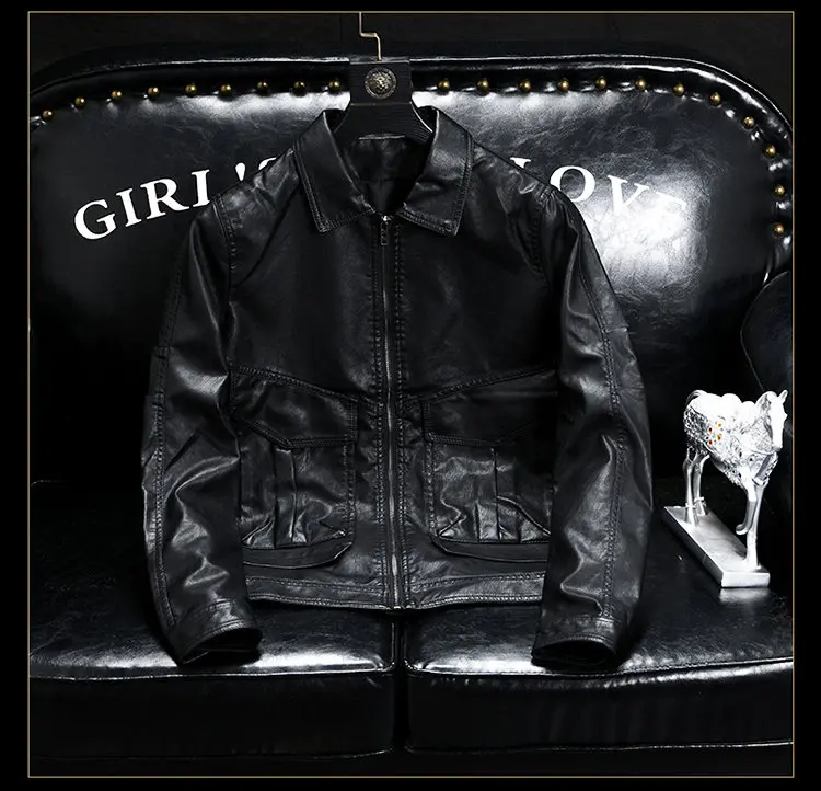 High-quality leather jacket with lapel, PU leather jacket, men's casual, trendy, slimming and fashionable leather jacket