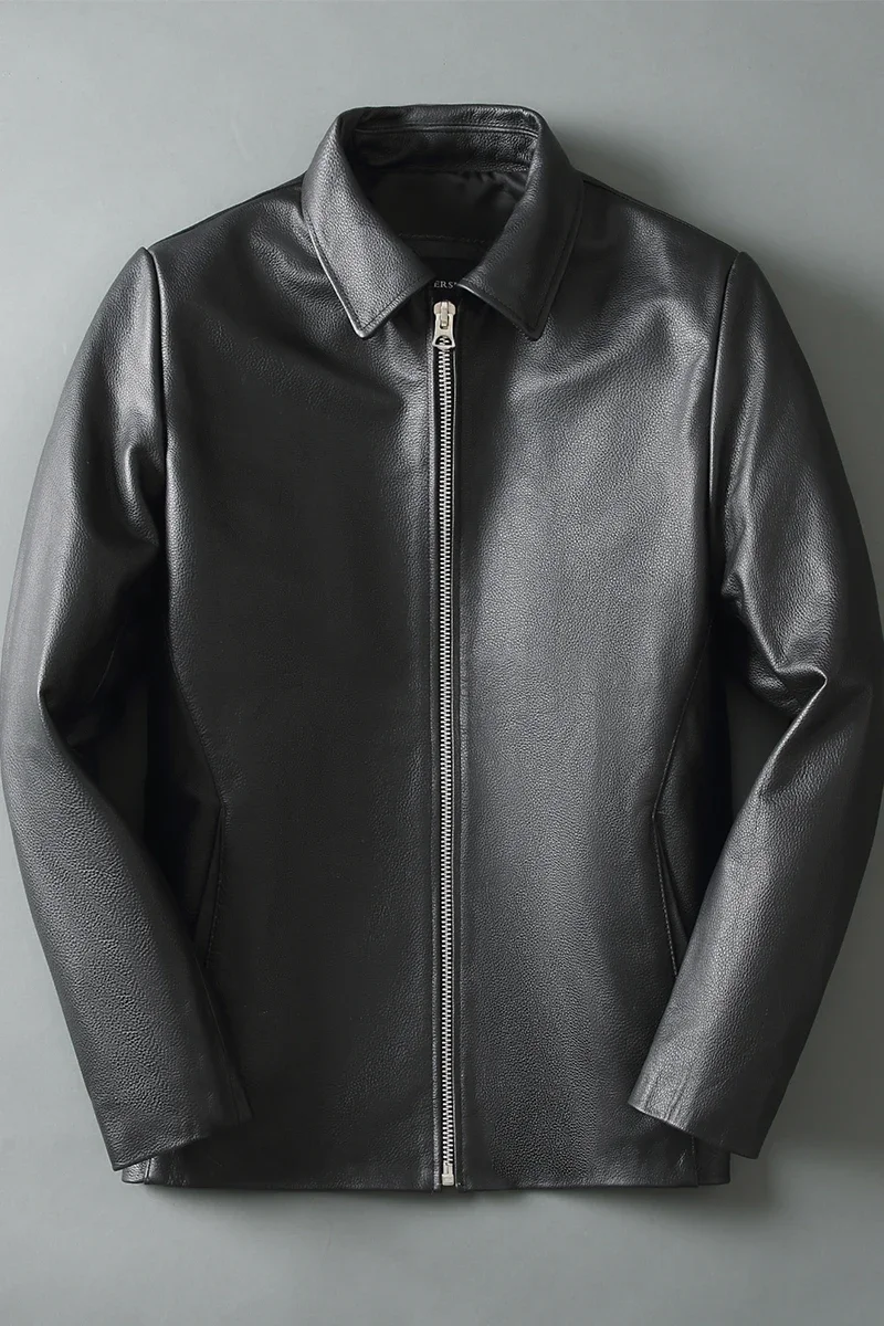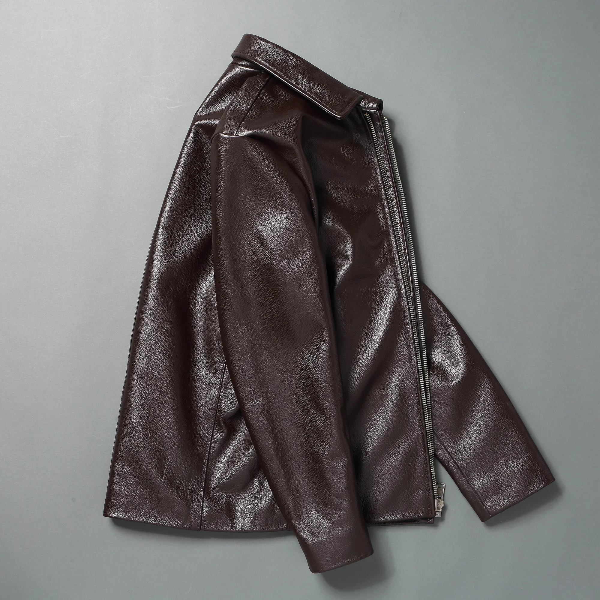 Men Leather Jacket Spring Autumn Soft Top Layer Cowhide Leather Loose Jacket Black Brown Lapel Natural Calfskin Classic Jacket