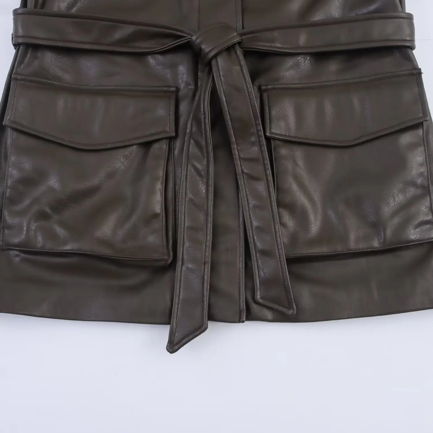 Women's Faux Leather Jacket Top Sleek and Structured Edgy Yet Fashionable Women's Faux Leather Jacket with Decorative Pockets